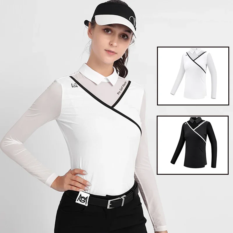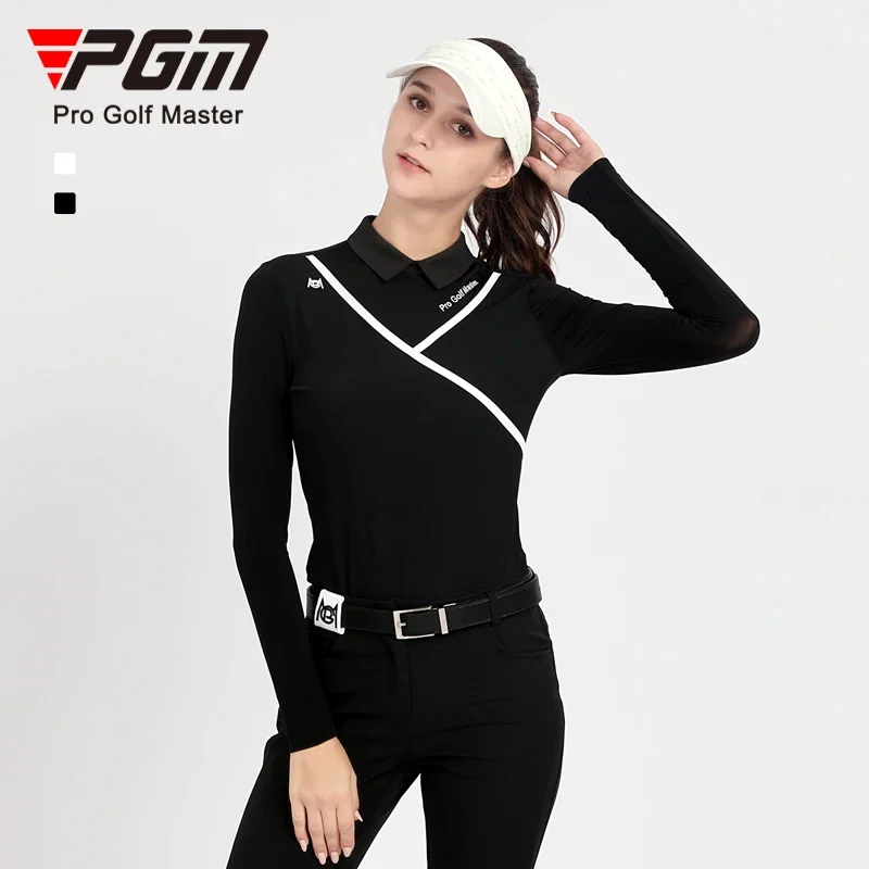PGM Women Elastic Golf Polo Shirt Ladies Sunscreen Full Sleeve T-shirt Ice Silk Quick Dry Soft Workout Tops Sport Golf Wear