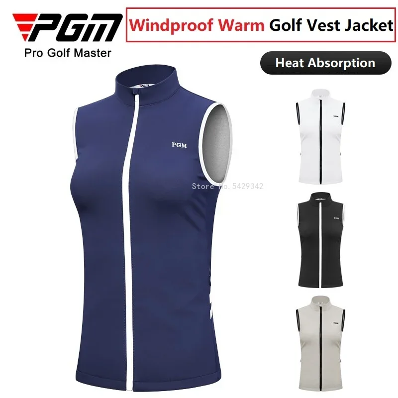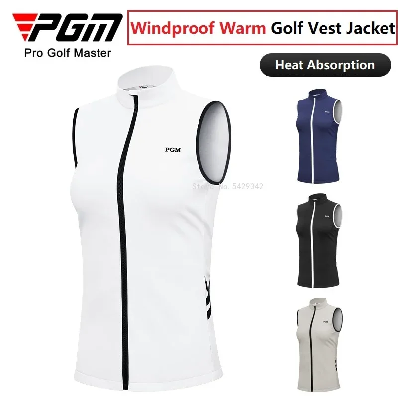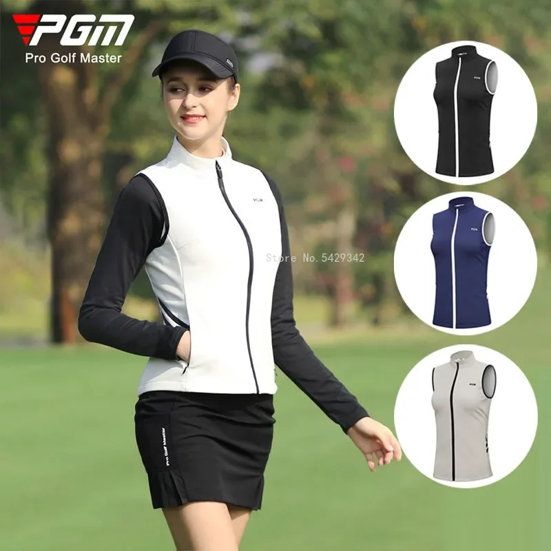 Pgm Women Golf Vest Windproof Sleeveless Golf Jacket Ladies Winter Grips Coat Full Zipper Slim Jacket Vest Waistcoat 4 Colors