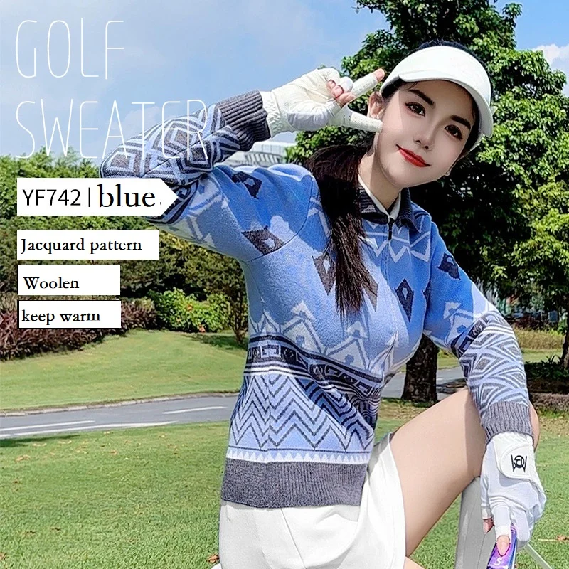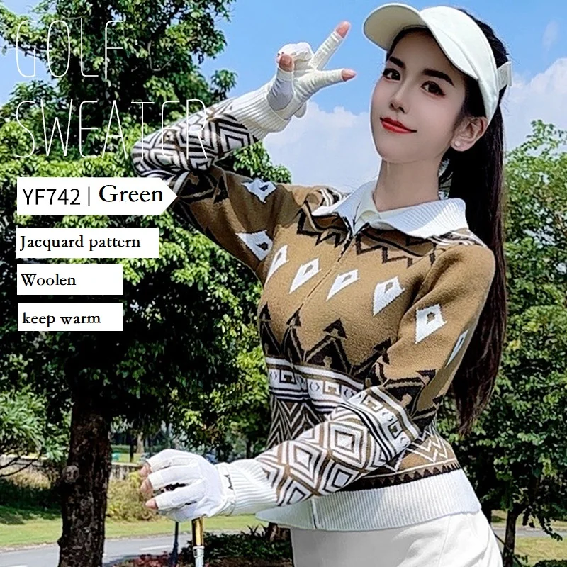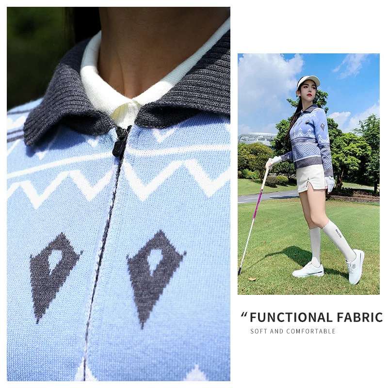 Pgm Women’s Fashion Printed Sports Cardigan High-end Knitted Golf Sweater Lady Long Sleeve Warm Golf Jacket Windproof Coat