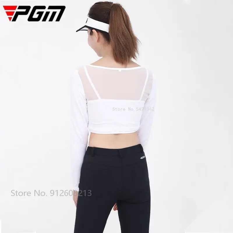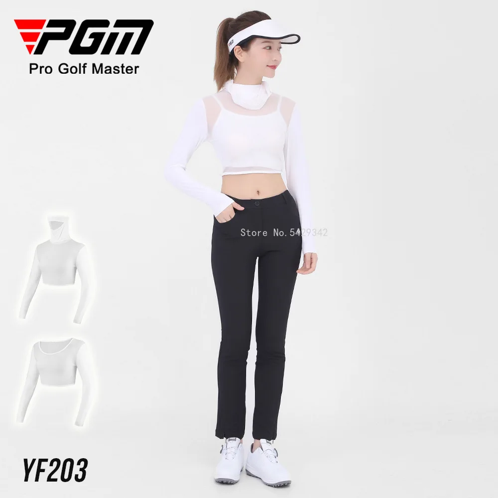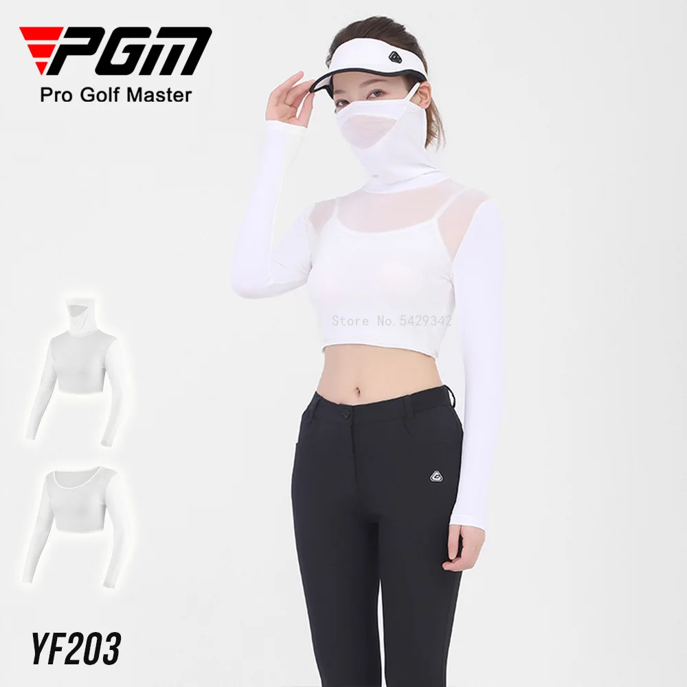 Pgm Womens Ice Silk Cool Shirts Half-Length Long Sleeve Cropped Tops Summer Sunscreen Golf Underwear With Mask Anti-UV UPF40+