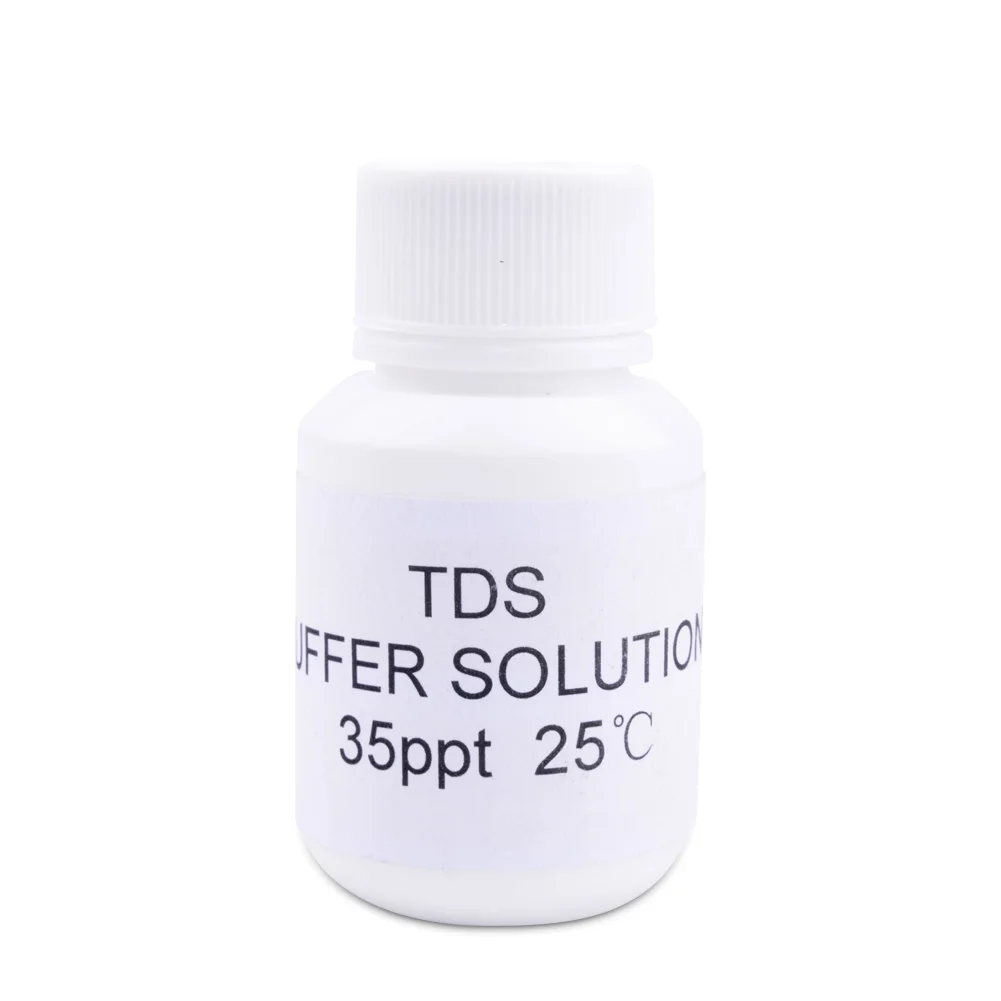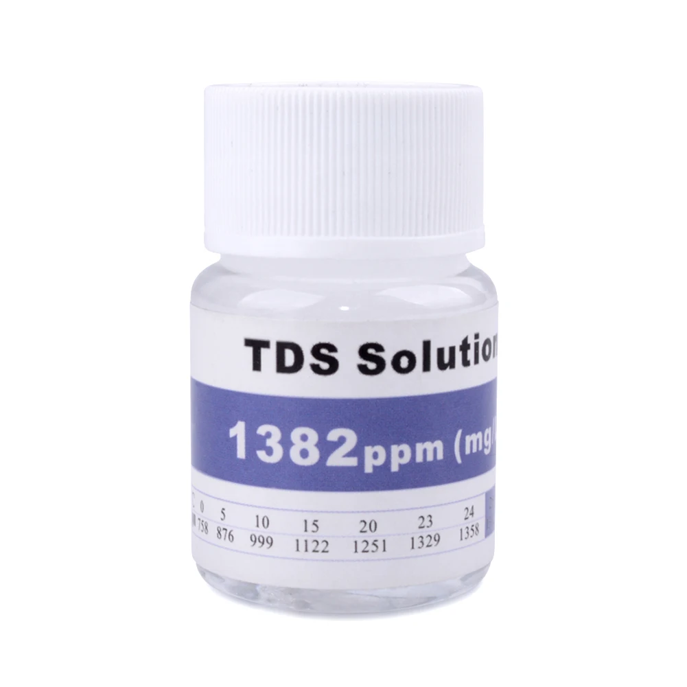 Three specifications: 84us/cm, 1413us/cm, 12.88ms/cm, 1382 TDS calibration fluid, TDS 35PPT liquid, 25ml per bottle