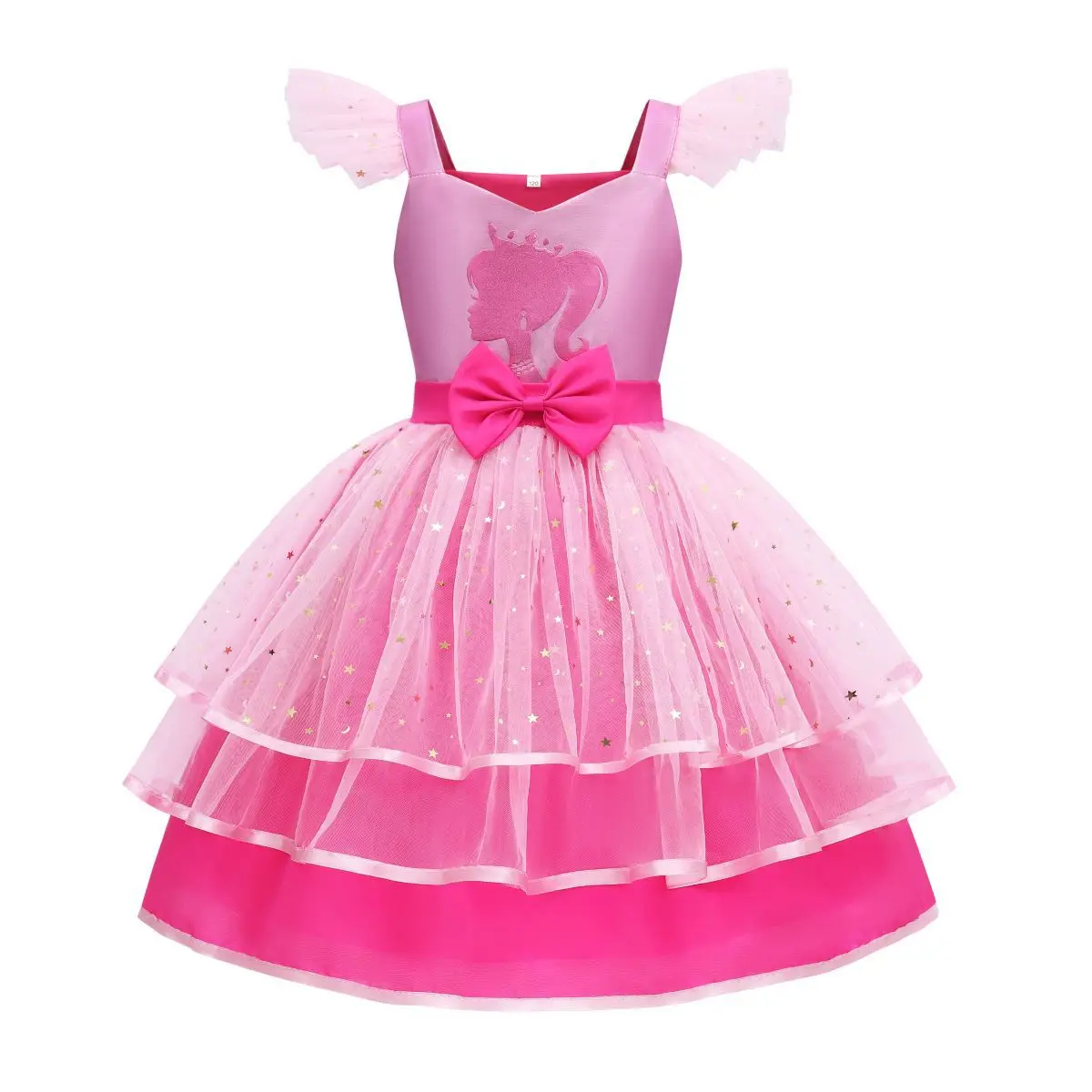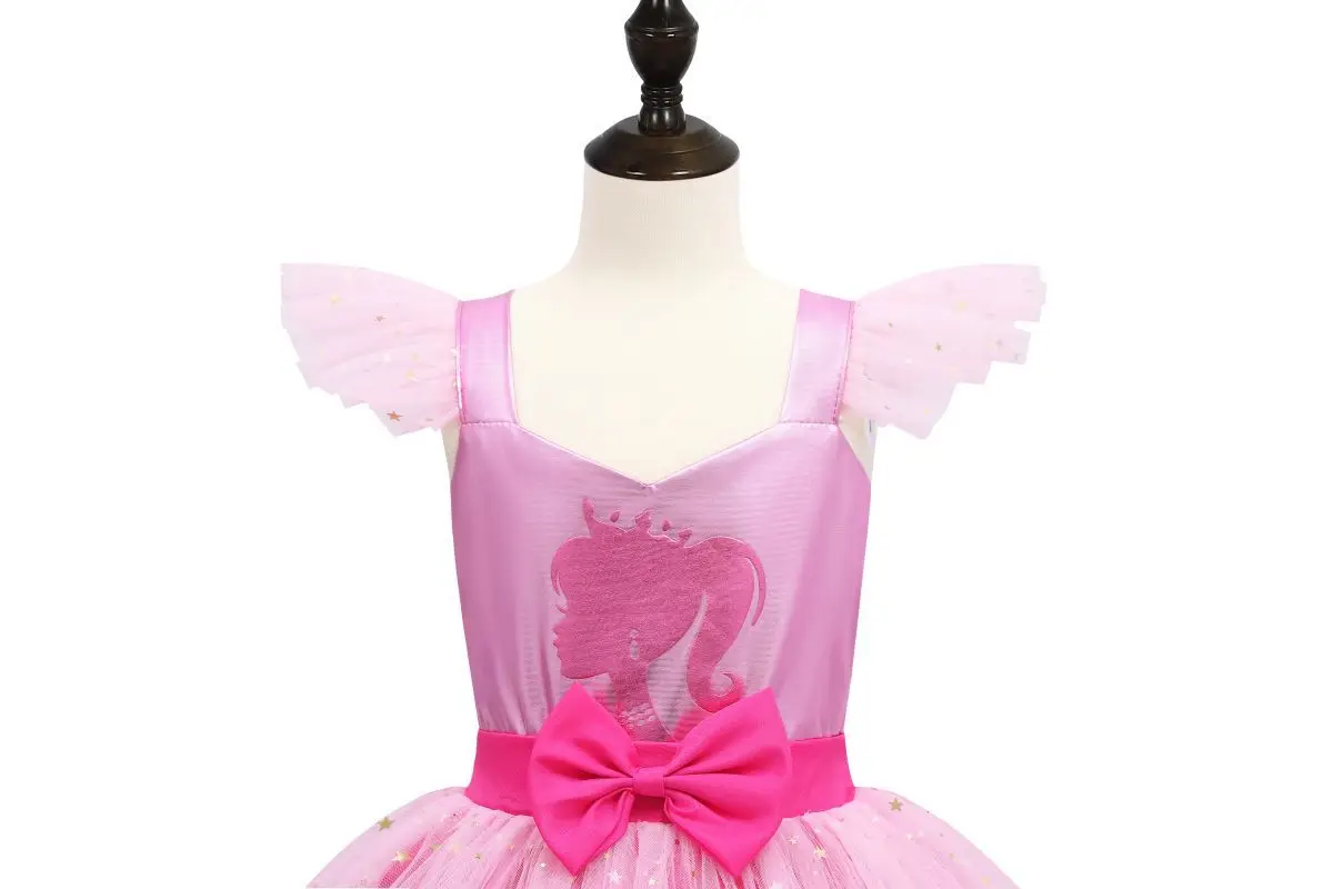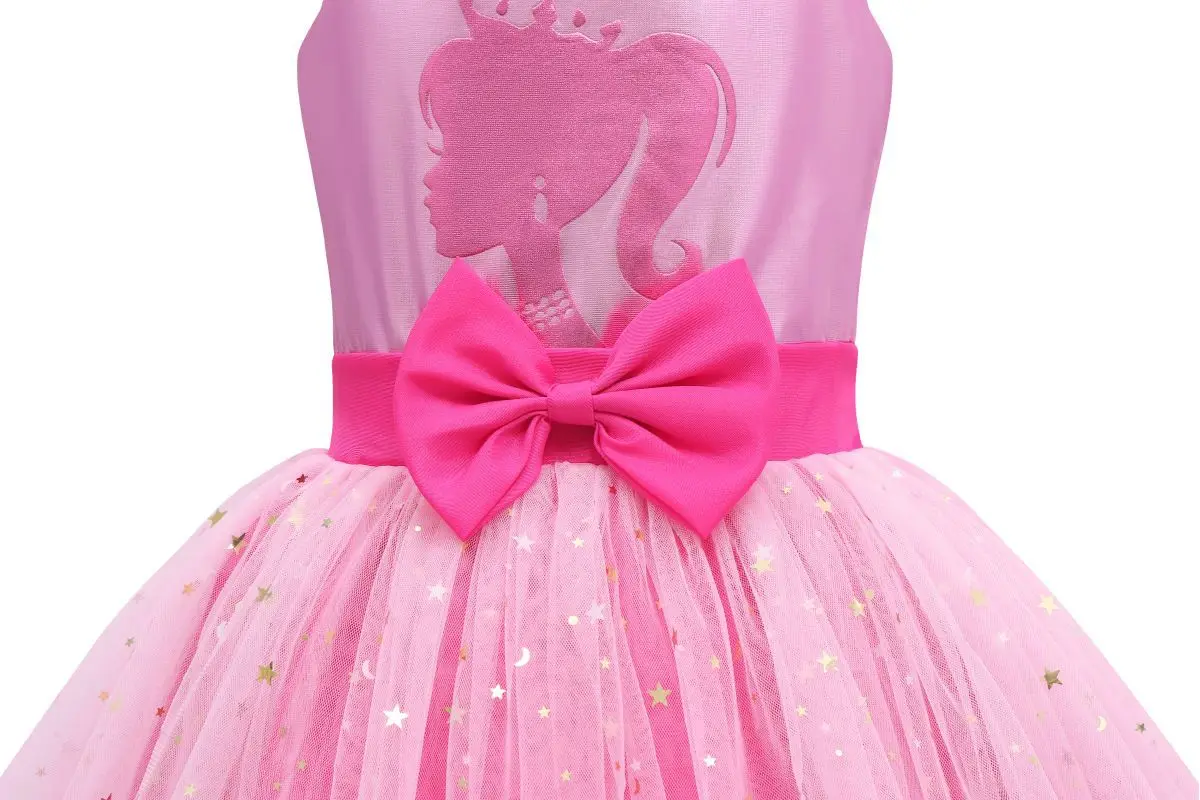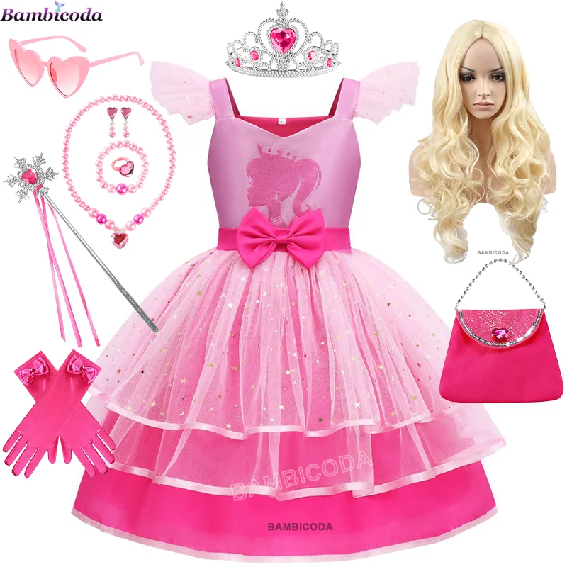 Pink Girls Barbi Costume Birthday Party Fashion Kids Rosy Sequins Tulle Birthday Tutu Dress Christmas Princess Dress Up Outfit
