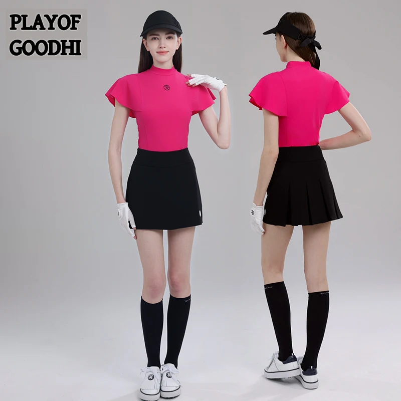 PL New Style Golf Shirt Woman Ruffle Fly Sleeve T-shirt Breathable Sports Tops Lady Golf Pencil Skirts A-lined Tennis Skorts