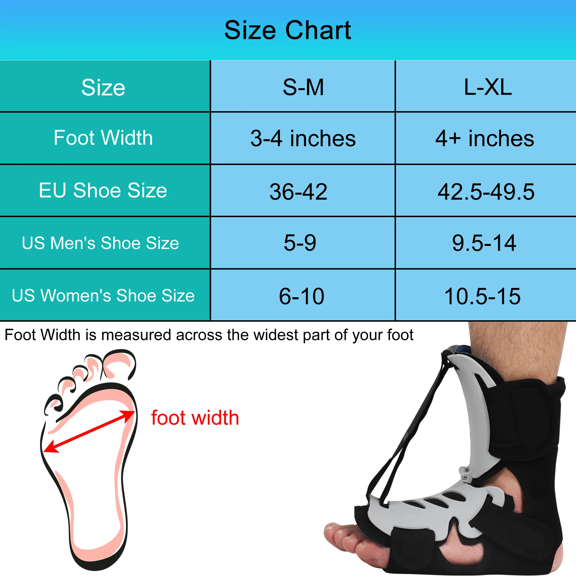 ● Plantar fasciitis splints are available in two sizes.Adjustable design fits most men’s and women’s left or right feet. Note that it does not fit inside shoes.