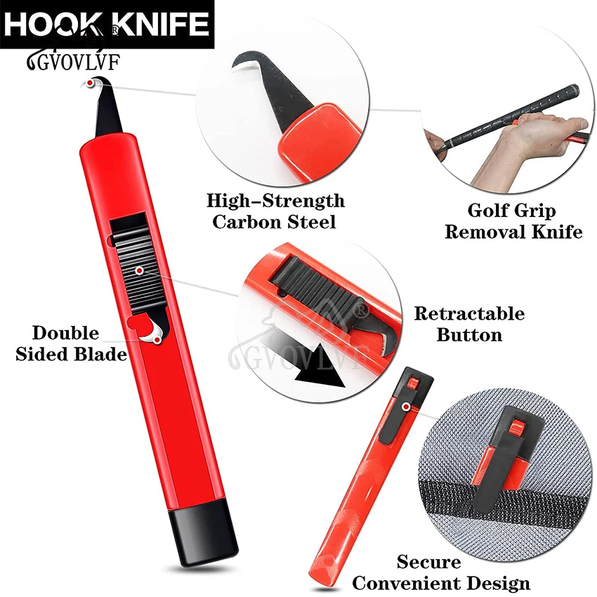 Portable Golf Retractable Hook Bladed Knife for Re-gripping Golf Clubs Golf Accessories Made From High Strength Carbon Steel