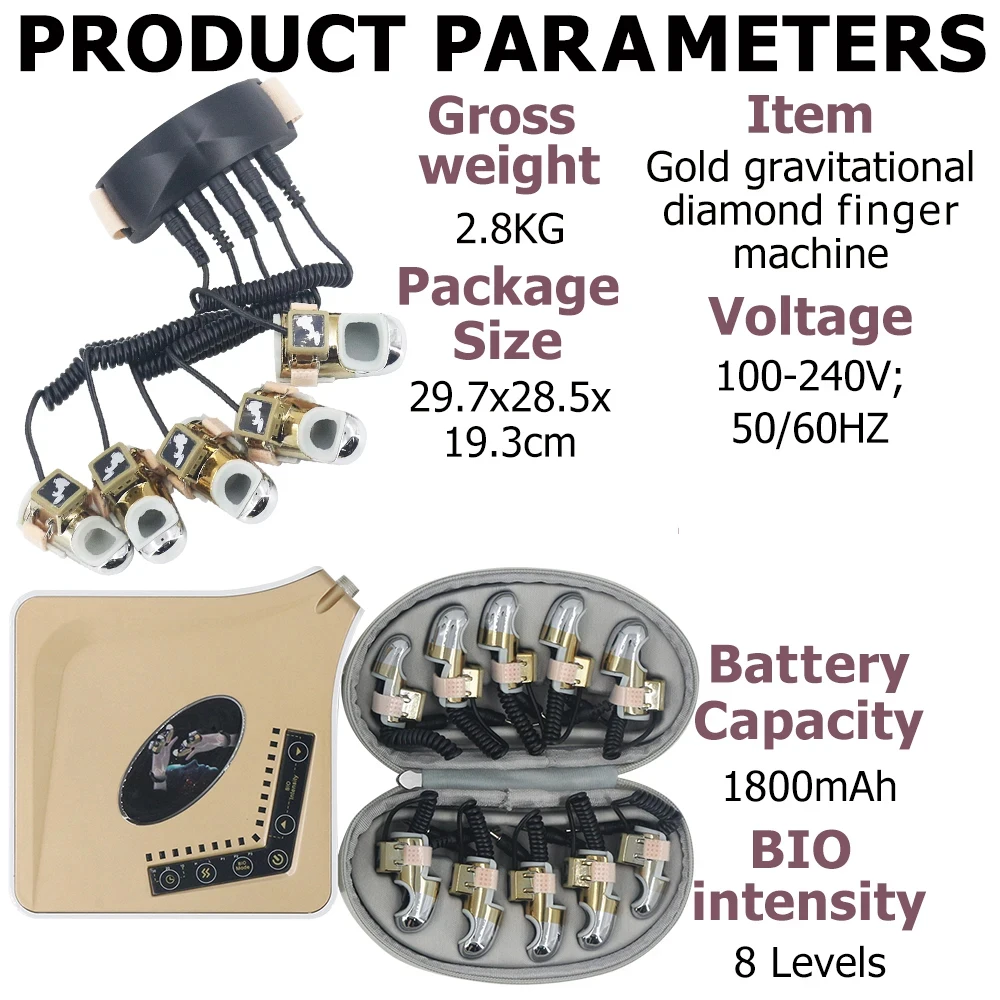 Note: Gold finger needs two or three gold fingers to touch the skin toget micro electricity.(Single touch has no micro electricity)