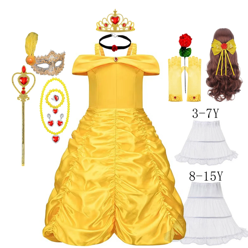 Princess Dress for Girl Kids Floral Ball Gown Child Bella Cosplay Beauty and The Beast Costume Fancy Party Belle Dress