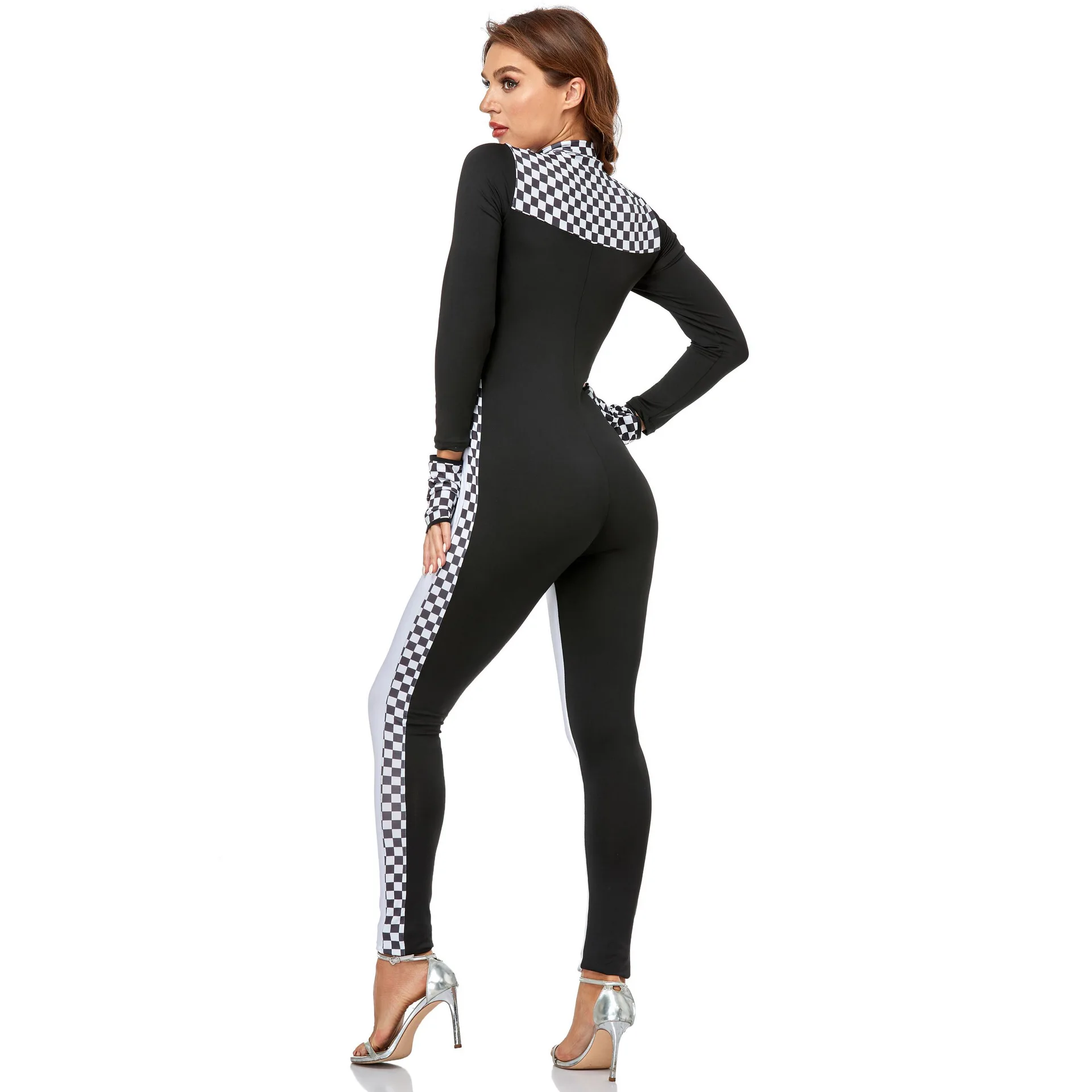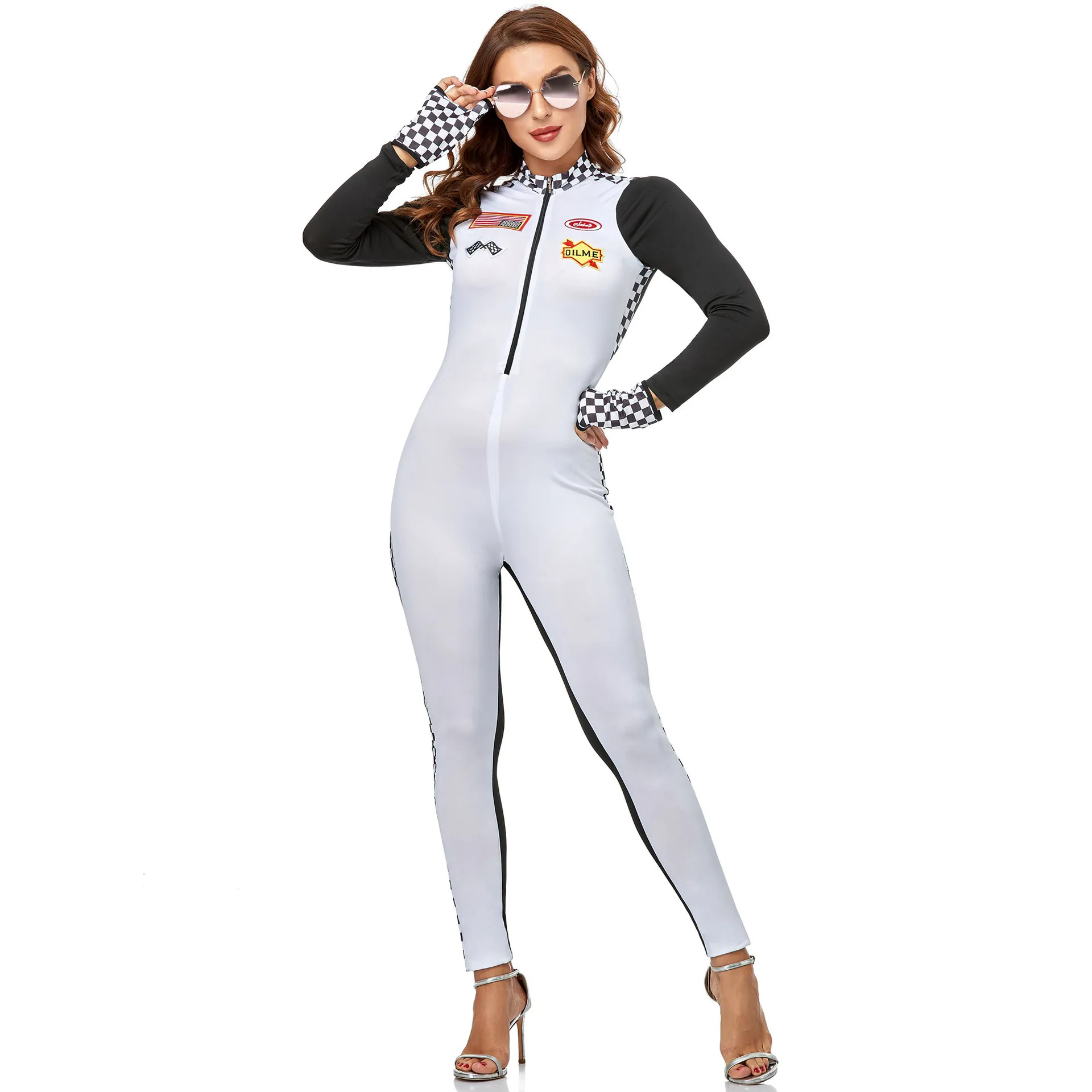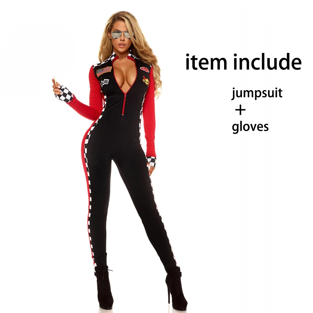 Racing Girl Women Jumpsuit Costume S-2XL Pink White Sexy Race Car Driver Uniform Halloween Exotic Race Bodysuit Fancy Dress
