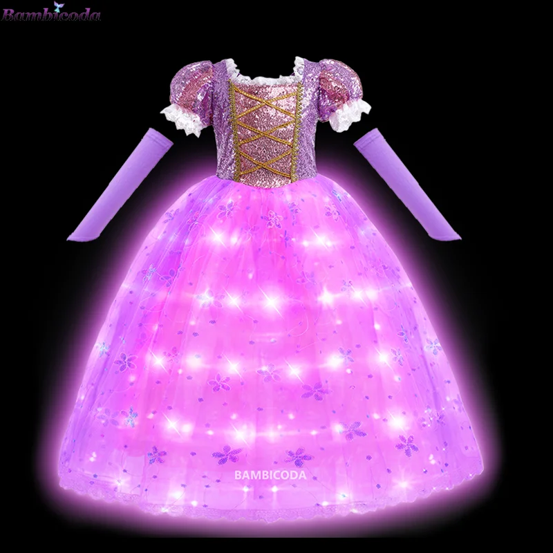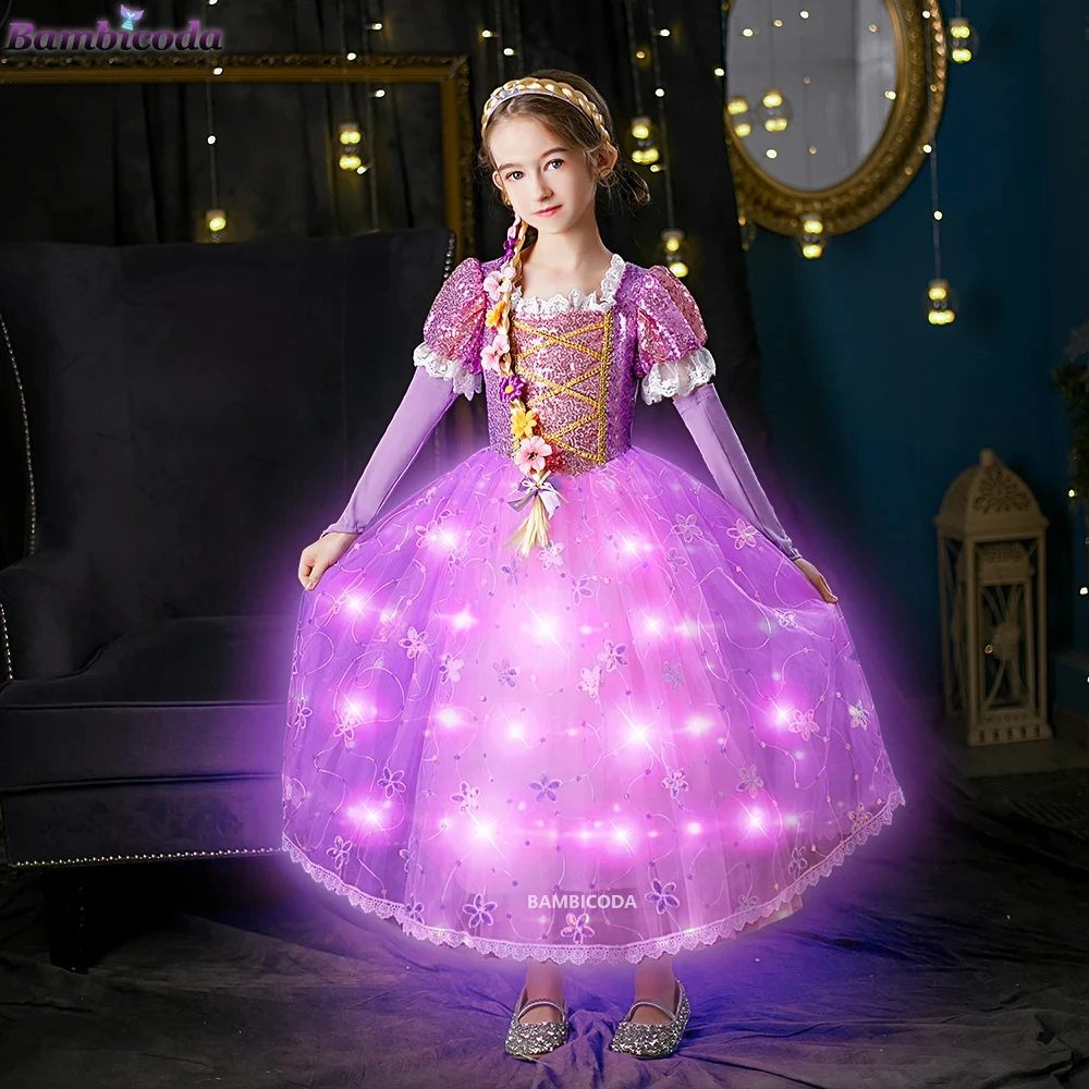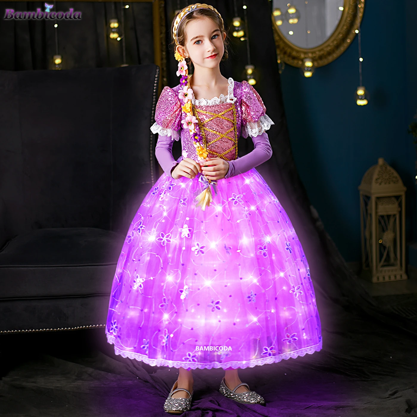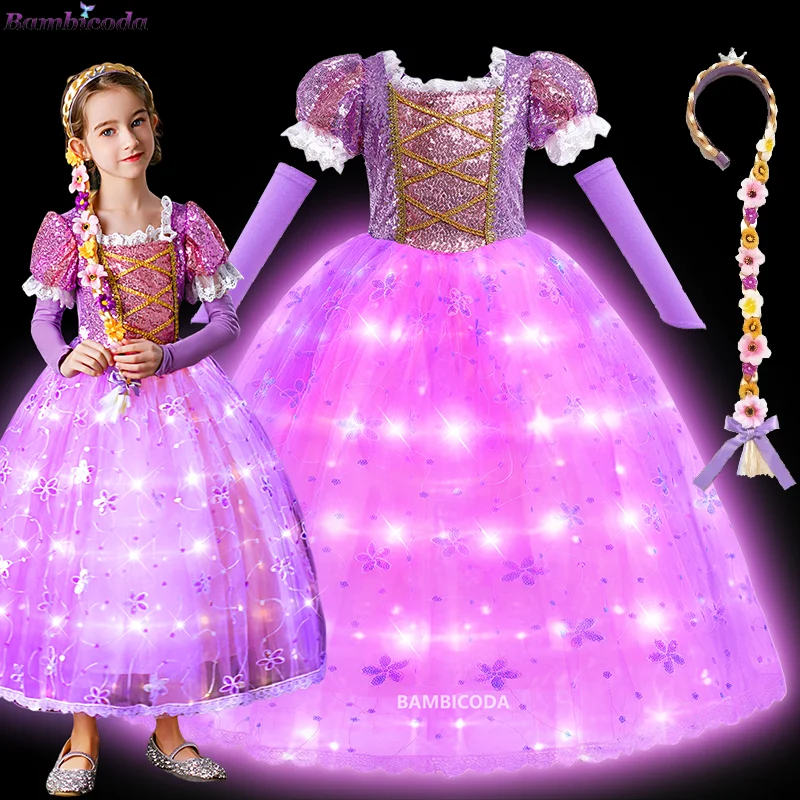 Rapunzel Princess Dress Children Birthday Party Fancy Girls Clothes Cosplay Tangled Costume Halloween Luminous Prom Gowns