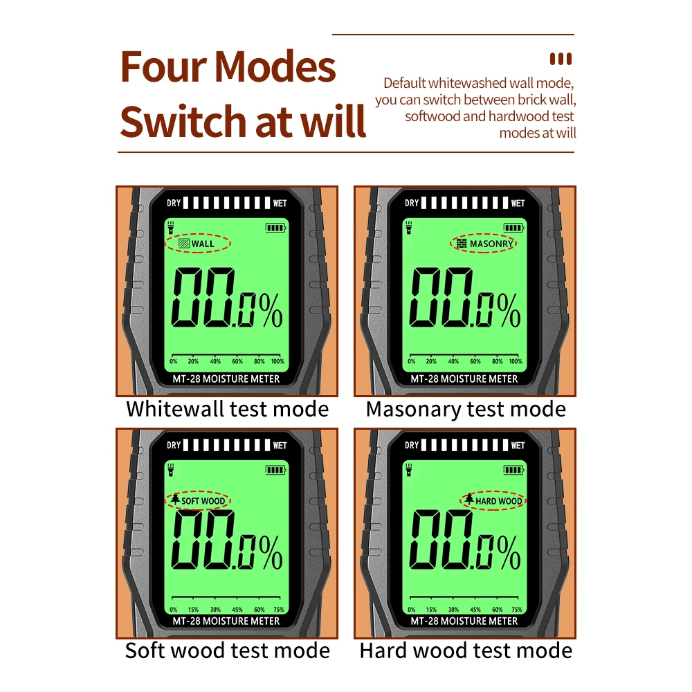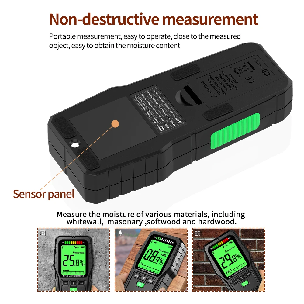 R&D MT28 Inductive Wood Moisture Meter Digital Electrical Tester Measuring tool LCD Display Ectromagnetic Wave Timber Hygrometer