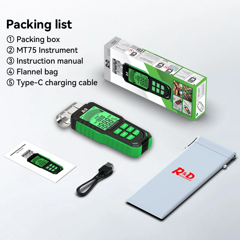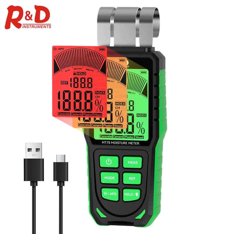 R&D MT75 Portable Textiles Moisture Meter for Wood Testing Handheld Hygrometer Humidity Tester Fabrics Testing