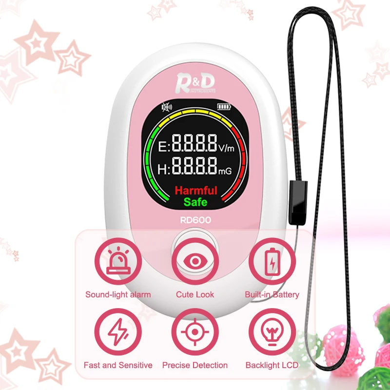 R&D RD600 EMF Meter Mini Electromagnetic Radiation Detector Electric Field Tester Magnetics Field Radio Test Sound Light Alarm