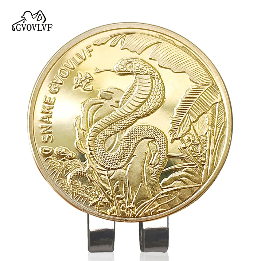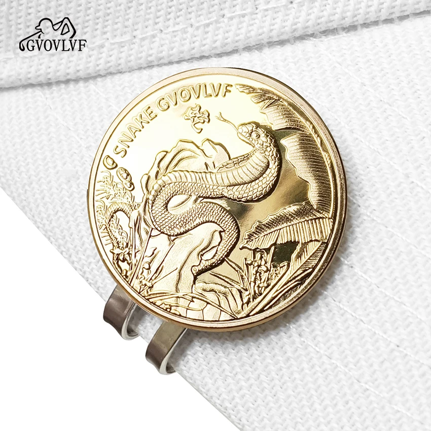 Removable Golf Ball Marker Year of the Golden Snake With Magnetic Cap Clips Golf Accessories Alloy Marker Gift for Golfers