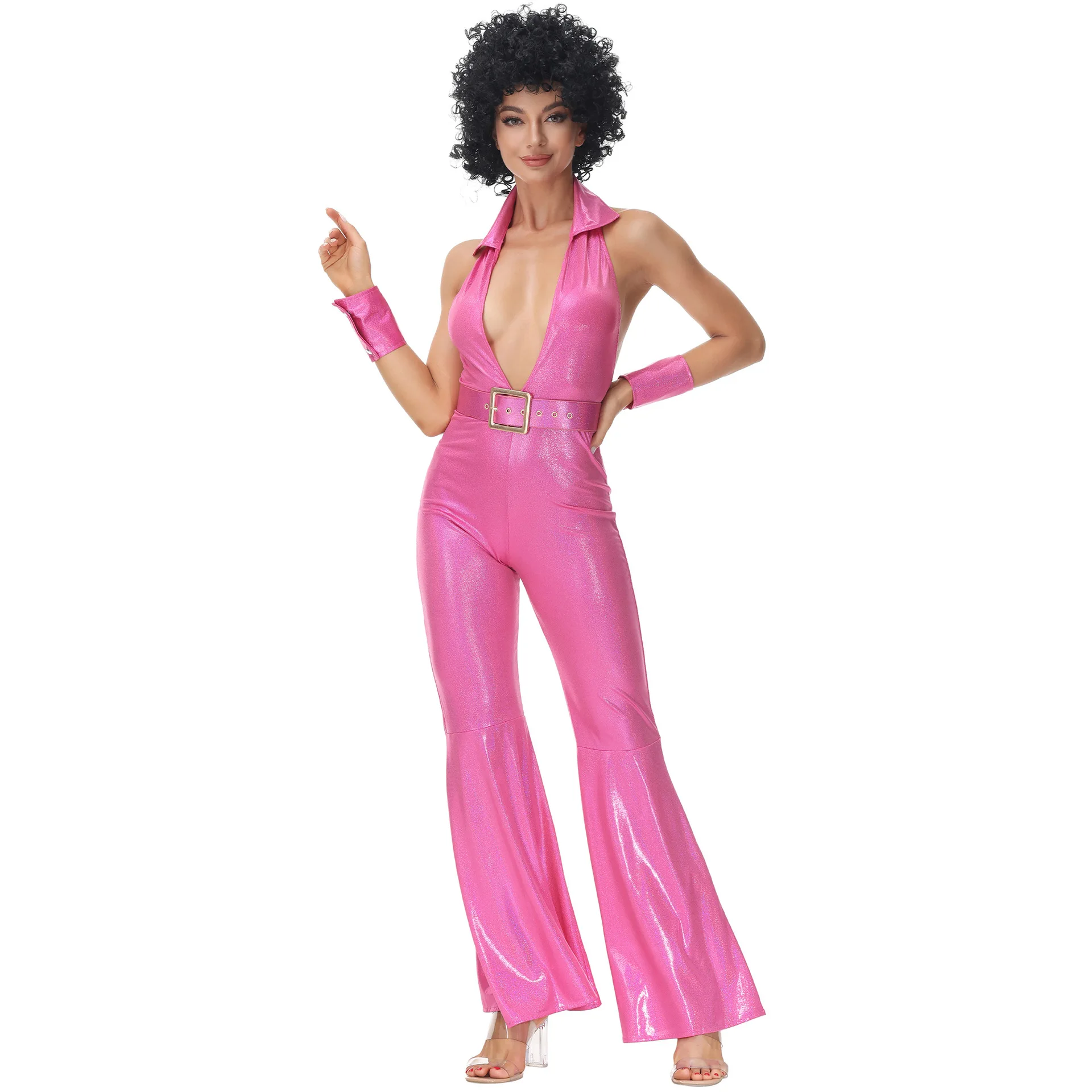 Mulai:Couples Vintage 70s Hippie Costumes Suit Women Men 80s Rock Disco Stage Performance Jumpsuit Cospla...
