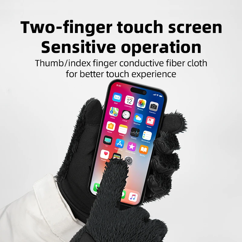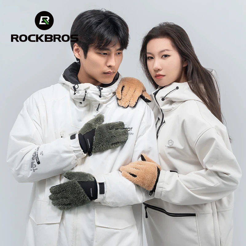 ROCKBROS Autumn Winter Ski Gloves Warm Windproof Gloves Cycling Snowboard Driving Double Layer Fleece-Lined Thickened Gloves