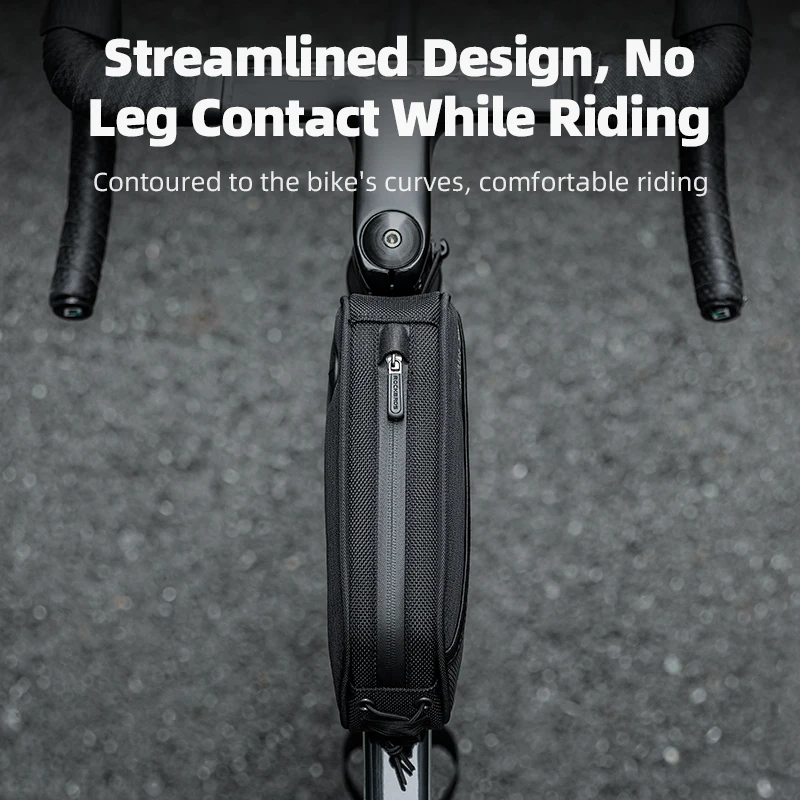 ROCKBROS Bicycle Bag 1.3L Portable Frame Front Tube Cycling Bag Waterproof MTB Road Bicycle Pannier Black With Headphone Jack