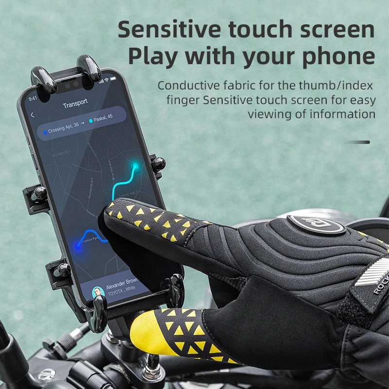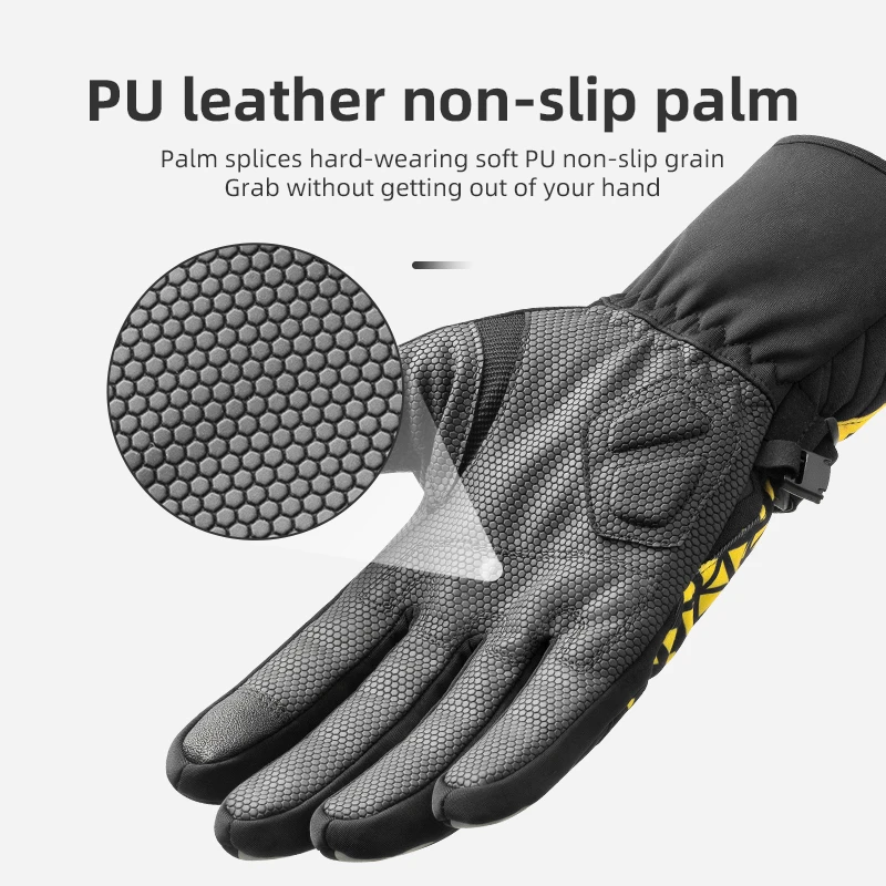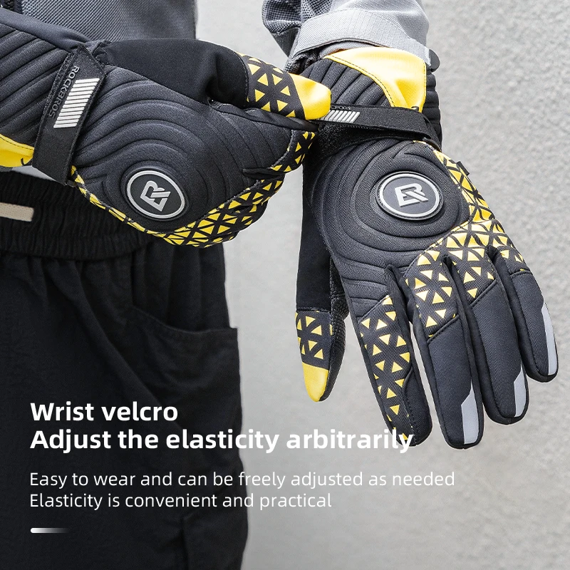ROCKBROS Bicycle Gloves Winter Warm Motorcycle Full Finger Cycling Gloves Screen Touch Ski Sports Gloves Hiking Thermal Mitten