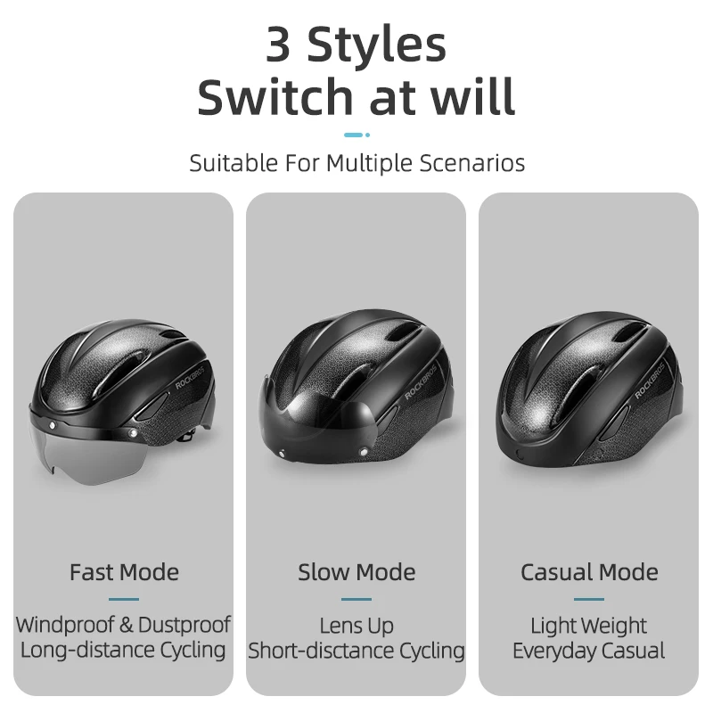 ROCKBROS Bicycle Helmet Men EPS Integrally-molded Breathable Cycling Helmet Men Women Goggles Lens Aero MTB Road Bike Helmet