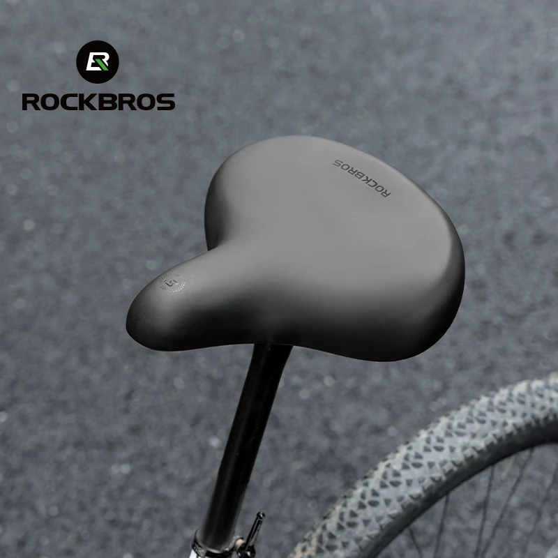 ROCKBROS Bicycle Saddle PVC Leather Comfortable Bike Seat Soft Shock Absorption Oversize Water-Resistant Cycling Cushion