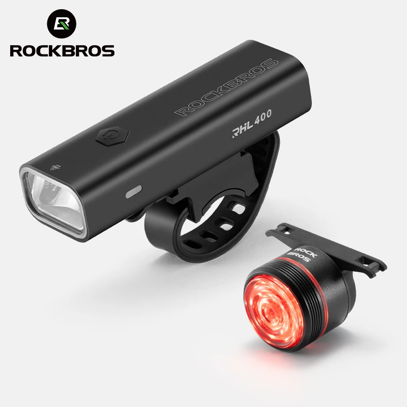 ROCKBROS Bike Light Set MTB Road Cycling Light Waterproof 200LM/400LM Bicycle Headlight + Smart Rear Light Auto Brake Sensing