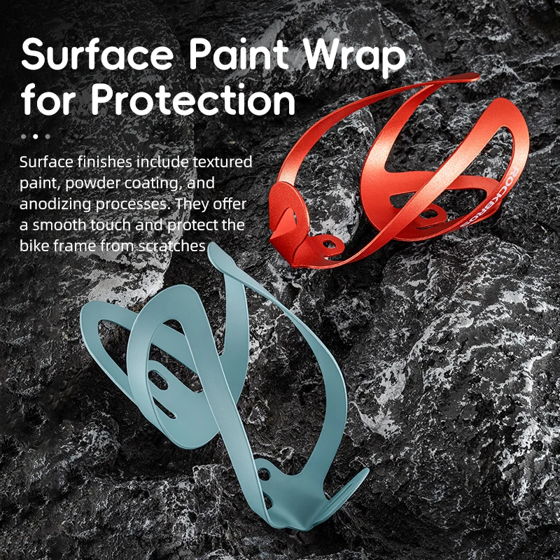 Surface finishes include textured paint, powder coating, and anodizing processes. They offer a smooth touch and protect the bike frame from scratches