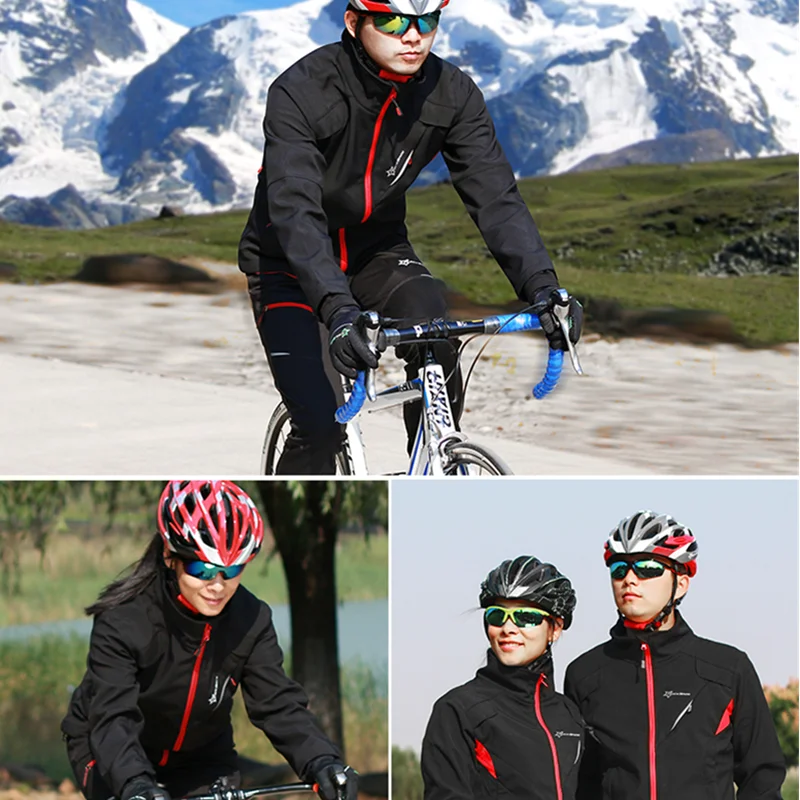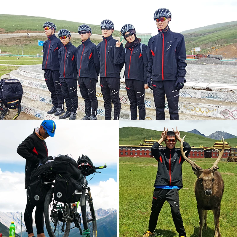 ROCKBROS Cycling Clothing Set Winter Windproof Reflective Cycling Jersey Thermal Fleece Pants Rainproof Set Men Women Sportswear