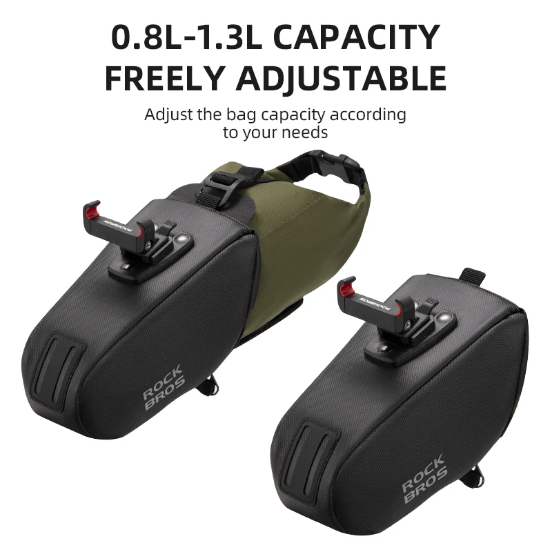 ROCKBROS Cycling Tail Bag Detachable Seat Pack Bag Large Capacity Waterproof Portable Riding Adjustable Bike Bag 0.8L-1.3L