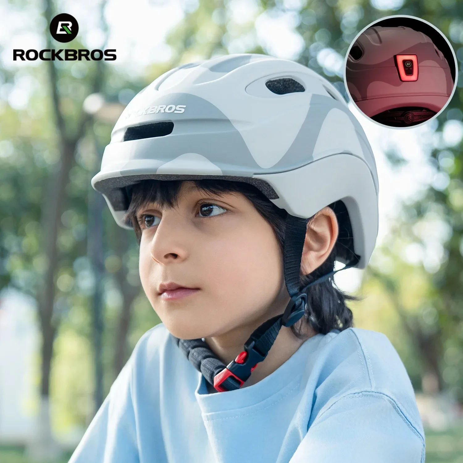 ROCKBROS Kids Cycling Helmet Breathable Safety MTB Road Helmet Outdoor Sports Skateboard Balance Bike Helmet with Taillight