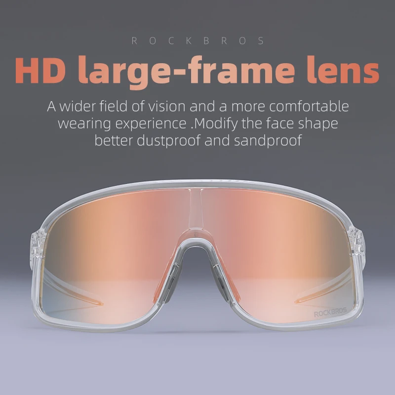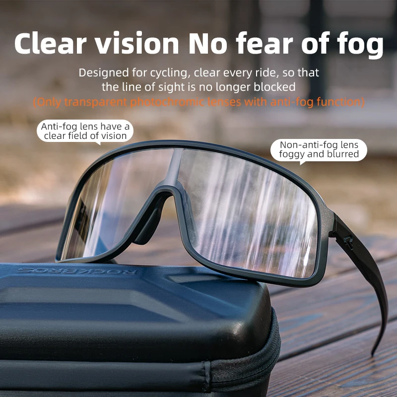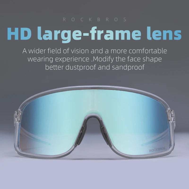 ROCKBROS Photochromic Glasses HD Large-frame Lens Outdoor Riding Sunglasses UV400 Eyewear Sports Eye Protection Cycling Goggles