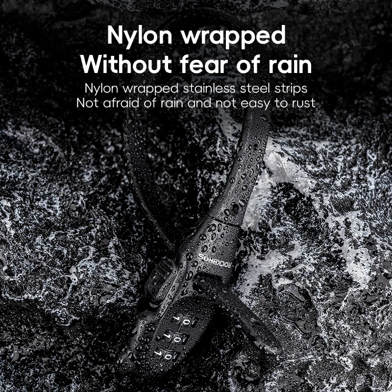 ROCKBROS Portable Bicycle Lock Cable Tie Zinc Alloy Lock Helmet Password Lock Anti-Theft Safety Freely Adjustable Rope Lock