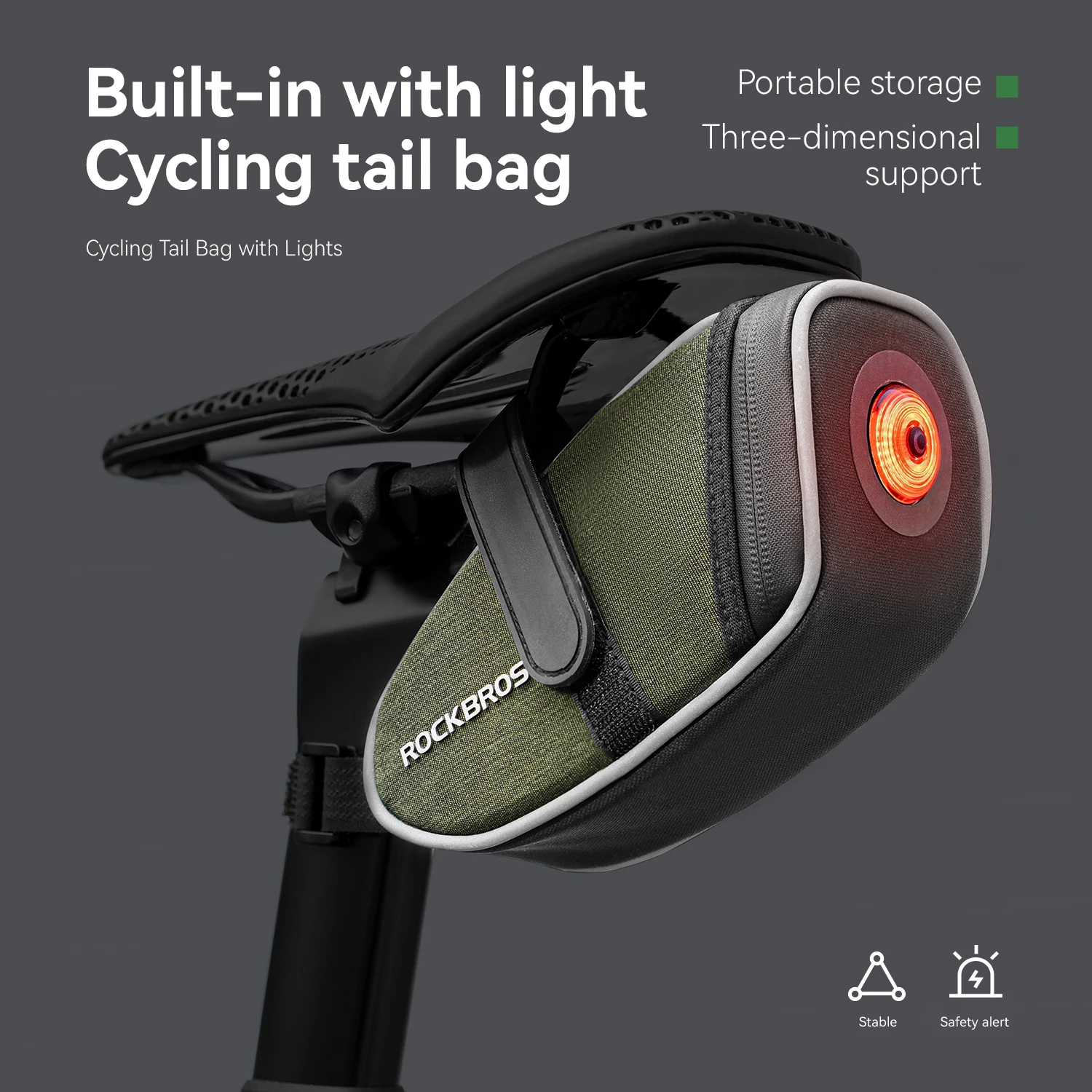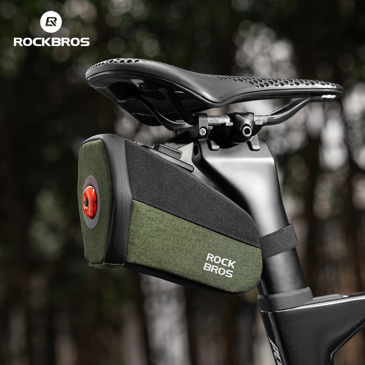 ROCKBROS Reflective Bicycle Saddle Bag 0.45L Waterproof Cycling Seat Tail Bag Portable with Taillight Storage Rear Bag