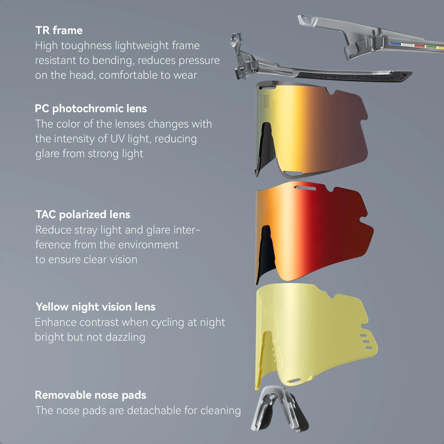 ROCKBROS ROAD TO SKY Photochromic Cycling Glasses Bike Polarized Outdoor Sports Sunglasses MTB Eyewear UV400 Bicycle Goggles