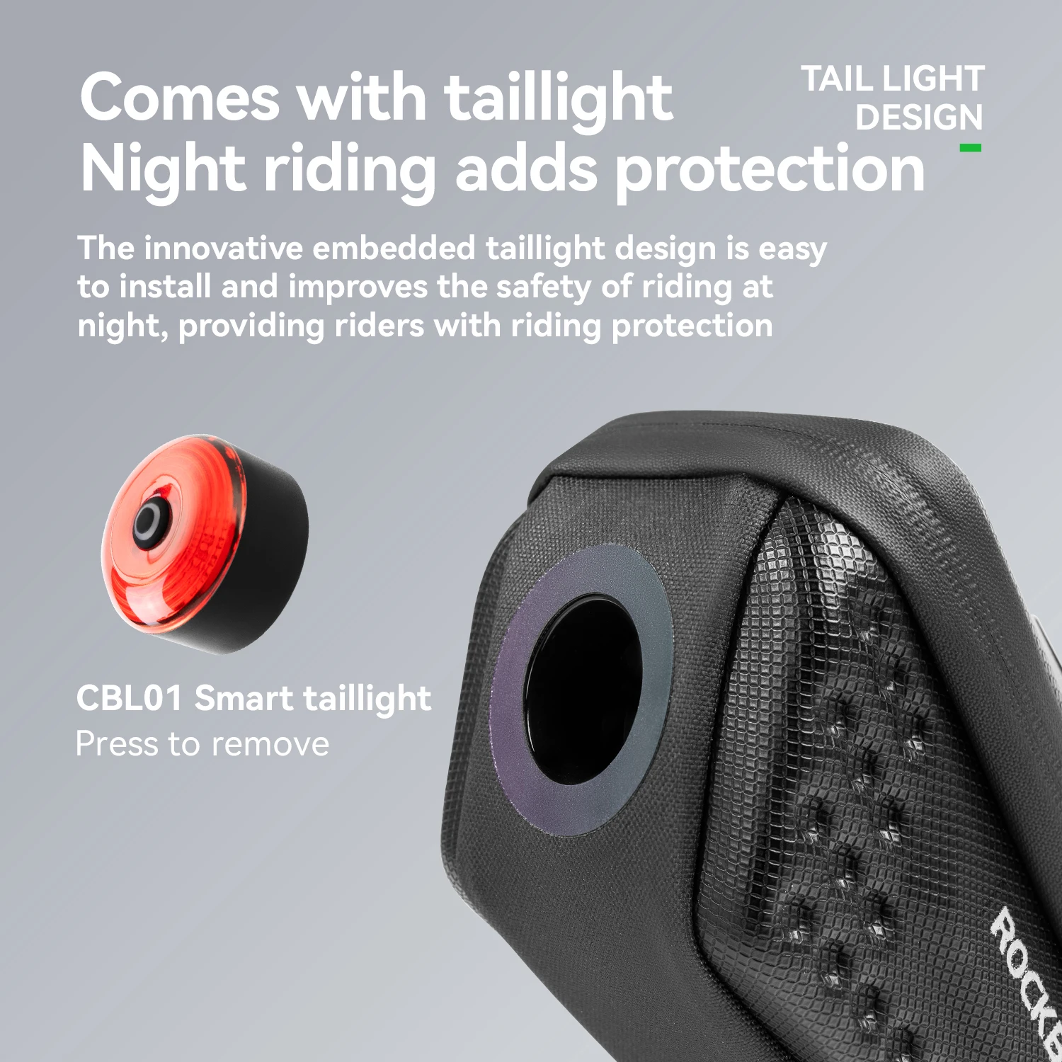 ROCKBROS Waterproof Bicycle Saddle Bag Hard Shell Bag with Taillight 5 modes Bicycle Saddle Bag Scratch-resistant Highlight Bag