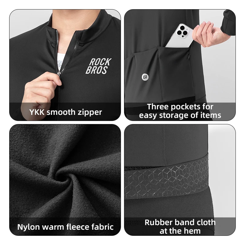 ROCKBROS Winter Cycling Jacket Fleece Warm Winter Thickened Long Sleeved Trousers Suit Cycling Outdoor Sportswear Ciclismo