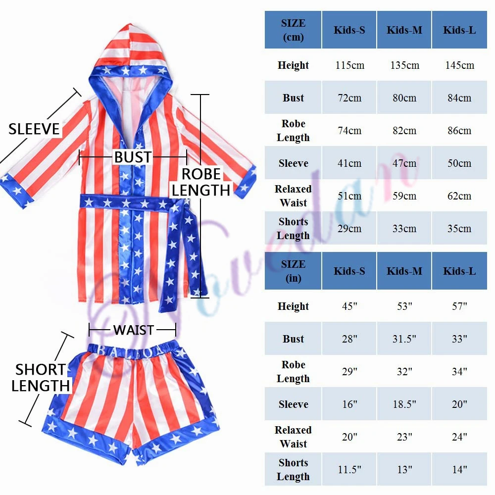 Rocky Balboa Apollo Movie Boxing American Flag Cosplay Costumes Kids Bathrobe Shorts Robe Boxing Costume Set Training Outfit