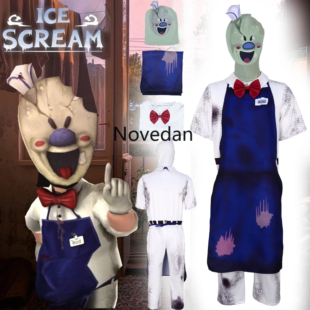 Horror Game Ice Scream Rod Costume Mask Jumpsuit Apron For Men Adult Child Kids Suit Halloween Cosplay Costume Set