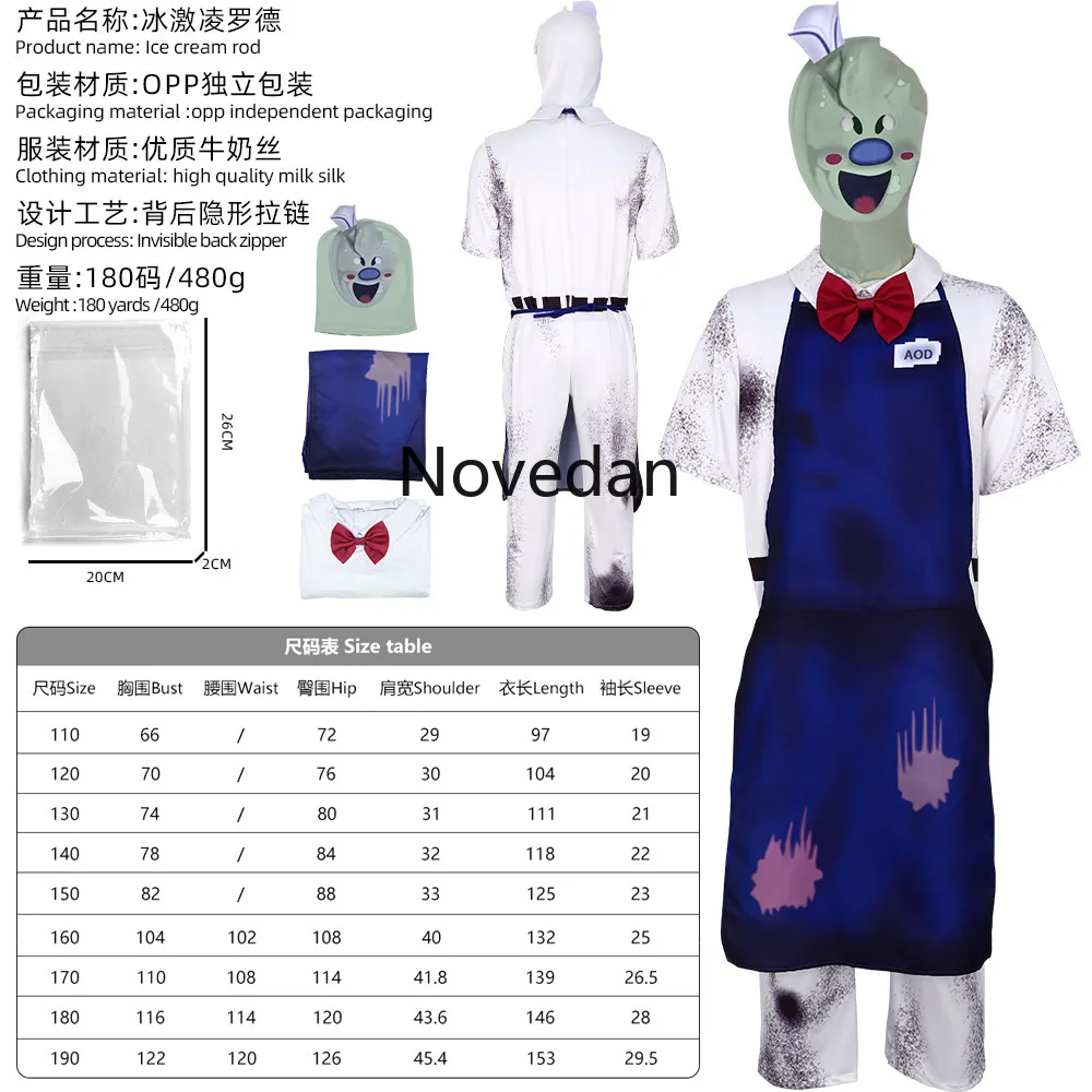 Rod Horror Game Ice Scream Cosplay Mask Suit Jumpsuit Apron Adult Child Kids Costume Halloween Party Roleplay Clothes Outfit