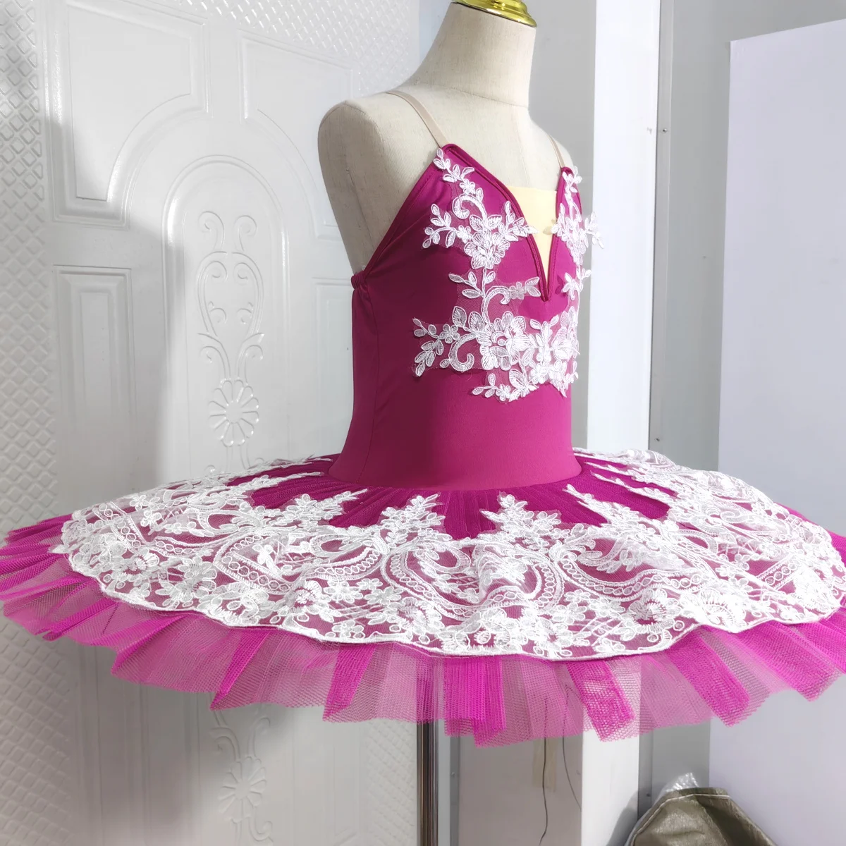 Rose Red Professional Ballet Tutu Skirt For Girl White Swan Toddler Performance Stage Dance Costumes