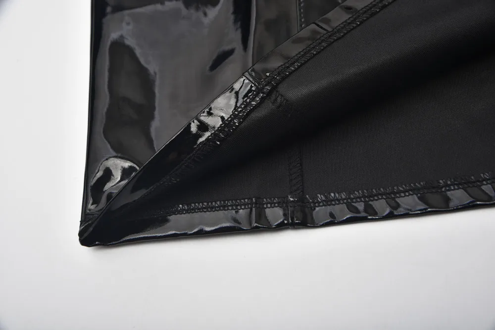 S-XXL Shiny Pvc Latex Dress Women Sexy Spaghetti Strap Hollow Out PU Leather Dress Bodycon Bandage Club Dress Vestidos