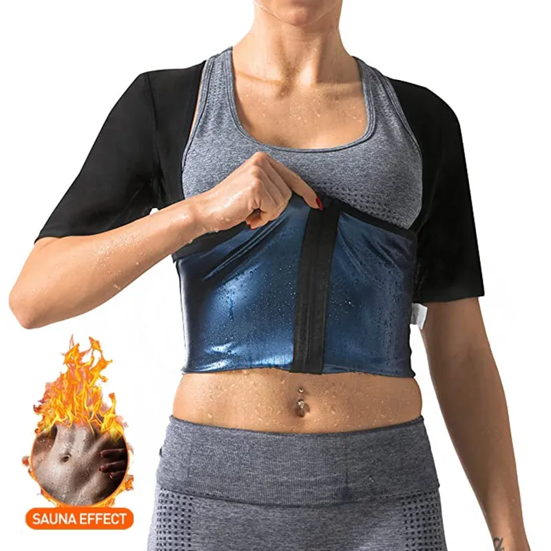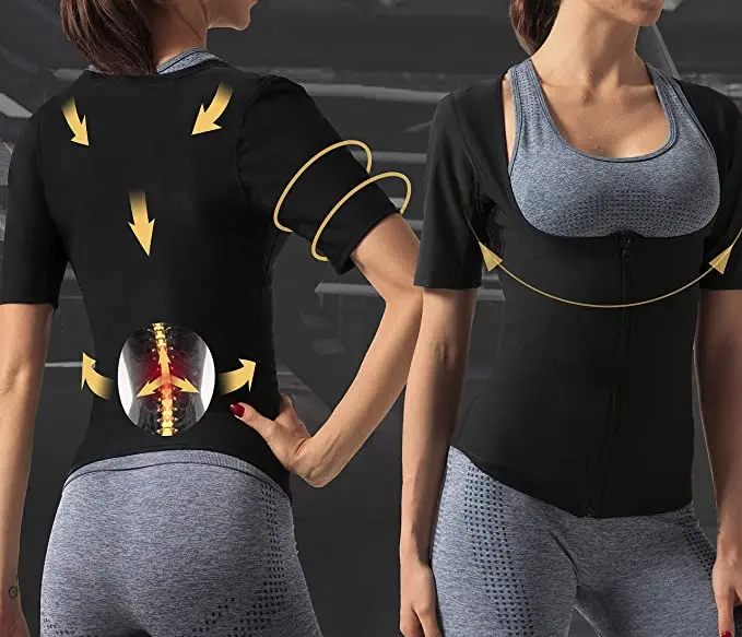 Sauna Shirt for Women Sauna Short Sleeve Sweat Vest Weight Loss Sauna Suit Training Slimming Body Shaper Workout Heat Trapping