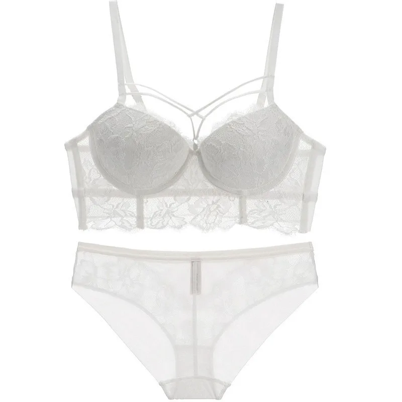 French Style Sexy Ultra-thin Lace Lingerie Beautiful Back Women Anti Sagging Solid Bra Brief Set Fe...