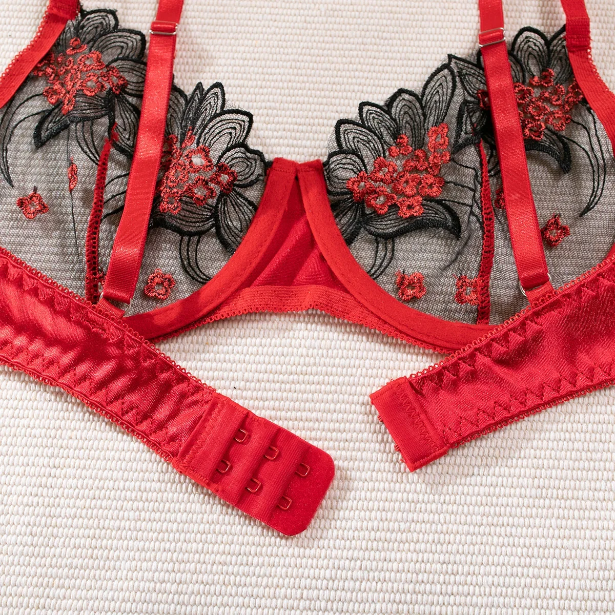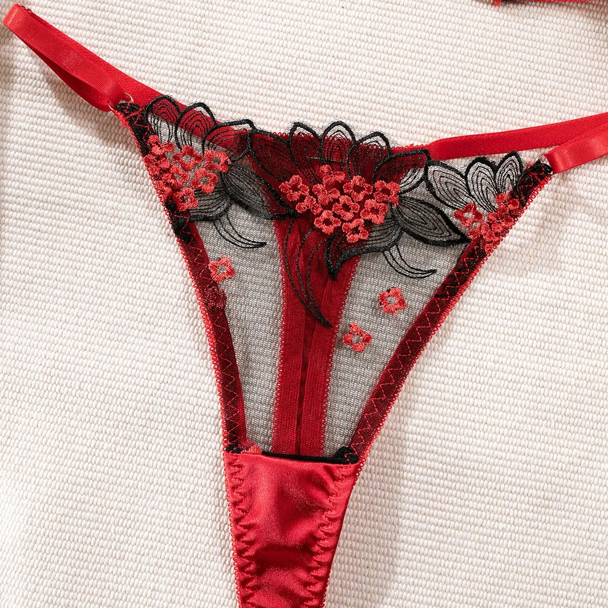 New Fashion Heavy Industry Embroidered Lingerie Set with Metal Buckle Women’s Sexy Perspectiv...