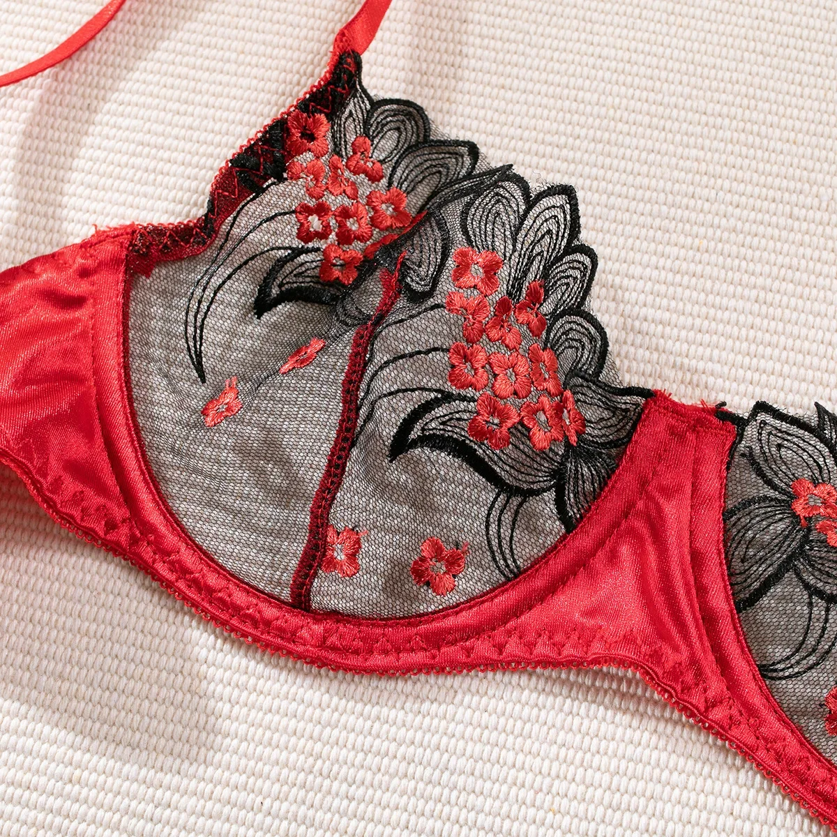 Sexy Floral Embroidered Exotic Apparel Suit Women’s Perspective Soft Steel Ring Bra Panty Set Single Layer Ultra-Thin Intimates