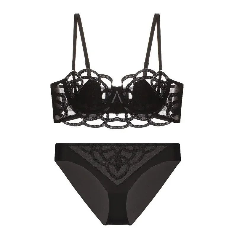 New Fashion Heavy Industry Embroidered Lingerie Set with Metal Buckle Women’s Sexy Perspectiv...