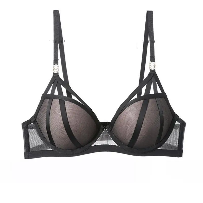 Sexy Solid Mesh Bra Women’s Chest Gather Anti Sagging Lingerie Set Female Ultrathin Underwear Set Soft Breathable Bra Brief Suit
