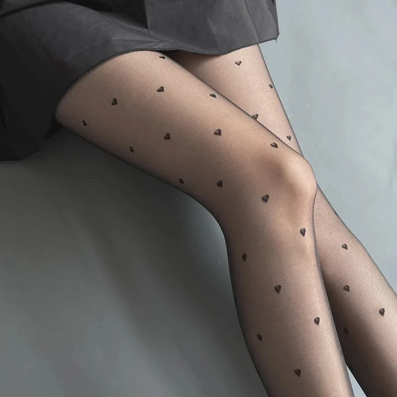 Sexy Stockings Women Black Heart Pantyhose Summer Translucent Ultrathin Tights Lolita Vintage Stock Silky Underwear Tights