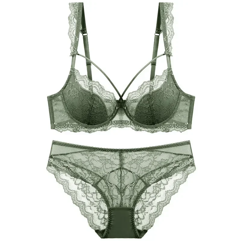 French Style Sexy Ultra-thin Lace Lingerie Beautiful Back Women Anti Sagging Solid Bra Brief Set Fe...