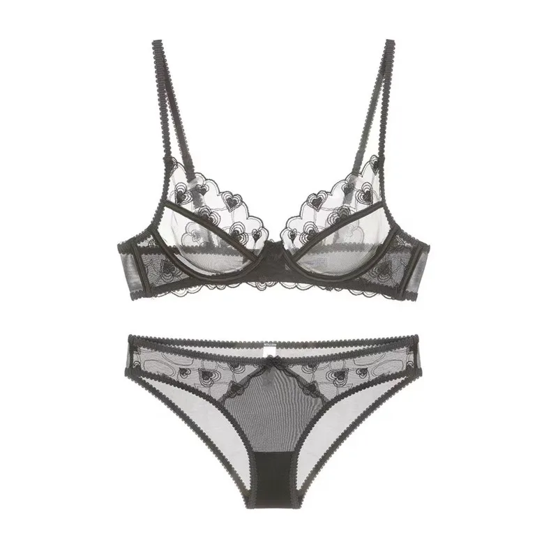 Sexy Ultra-thin Mesh Embroidery Lace Lingerie Set French Style Women’s Solid Anti Sagging Large-sized Underwear Bra Everyday
