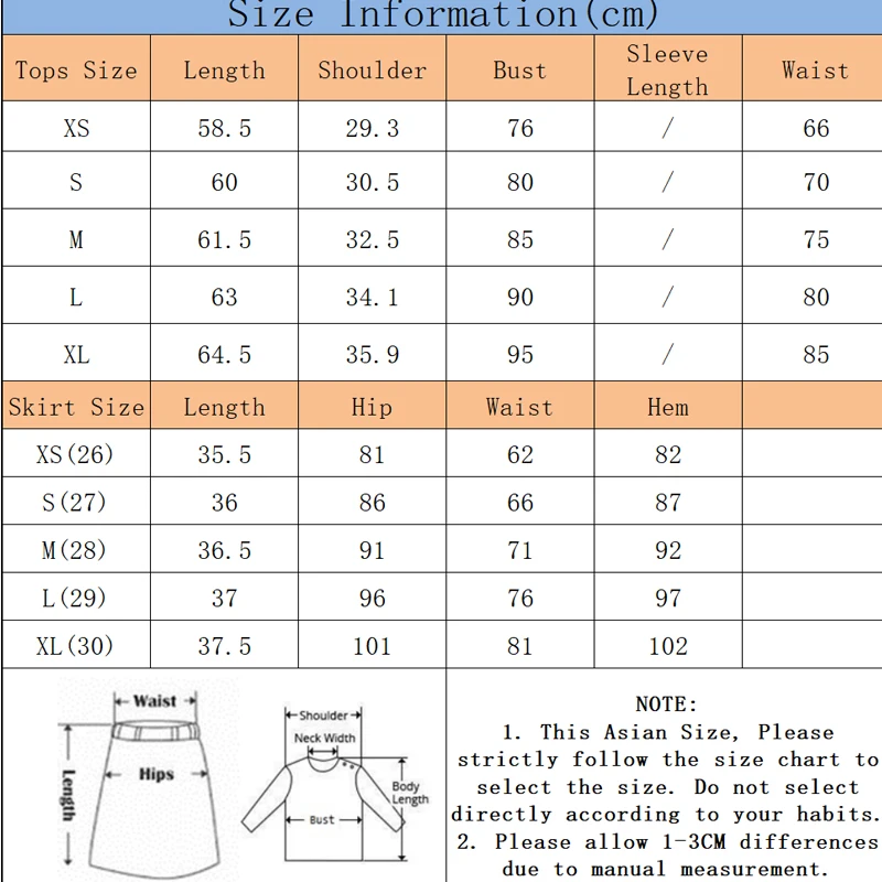 Package:1 Pcs tops or 1 Pcs skirt