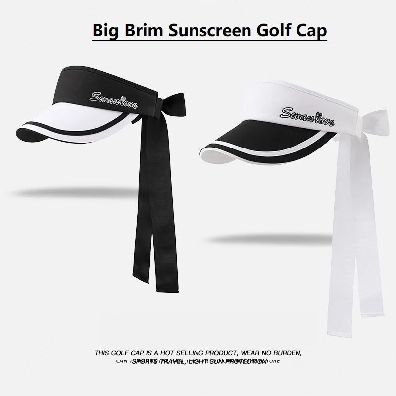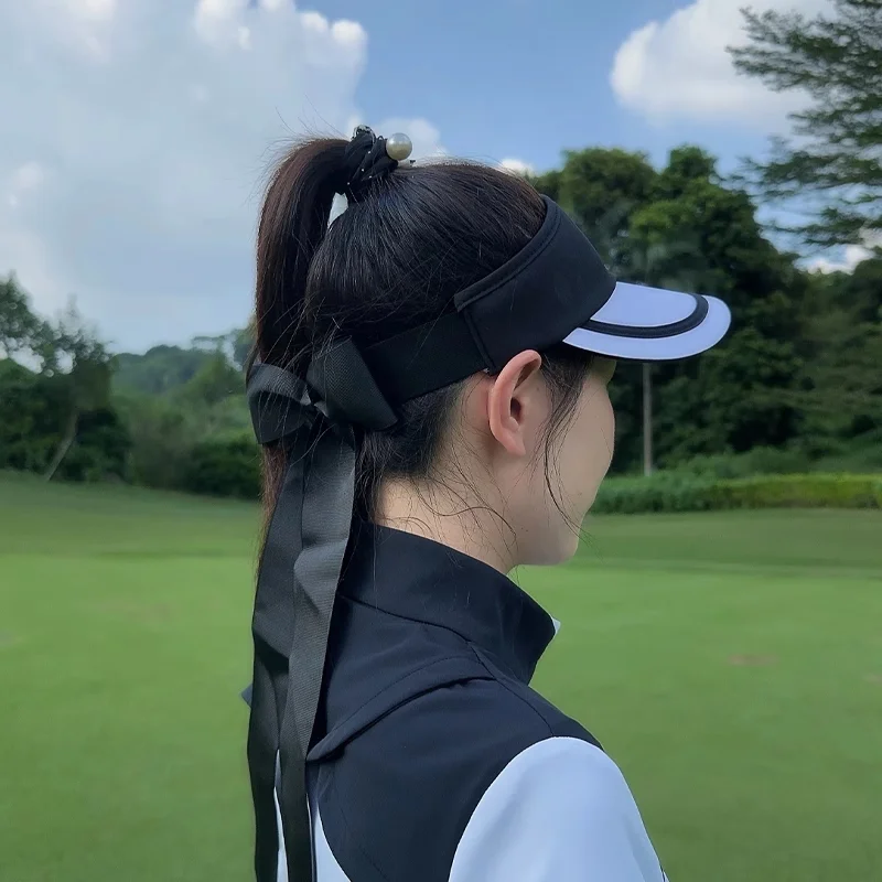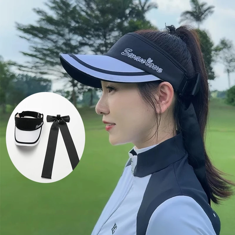 SG New Golf Cap Lady Empty Top Sports Hat with Bowknot Ribbon Women Adjustable Sunscreen Tennis Golf Caps Outdoor Running Hats